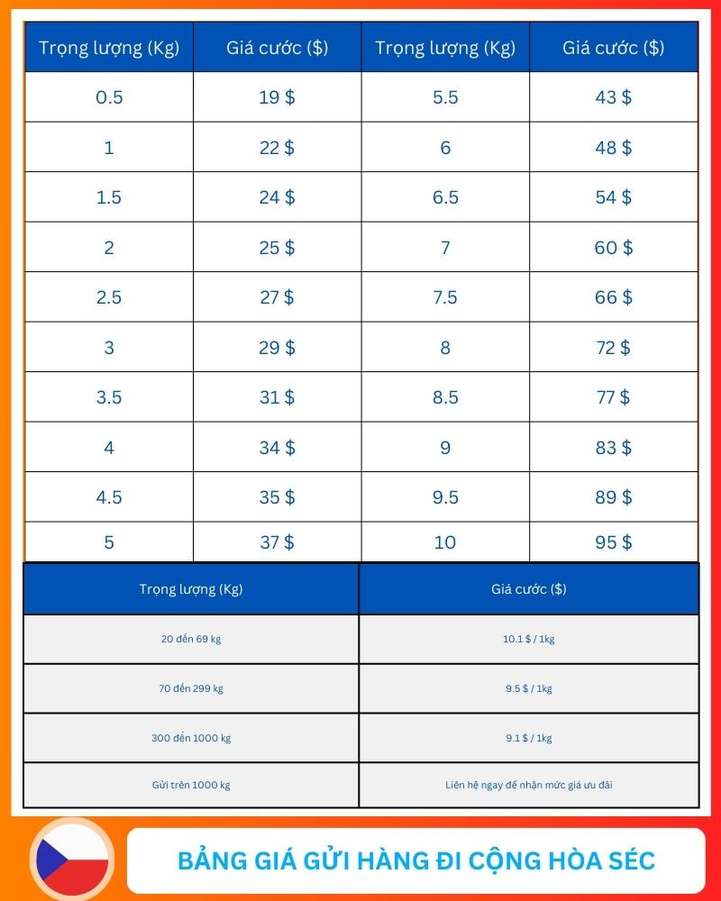 Bảng Giá Gửi Hàng Đi Séc Cập Nhật Mới Nhất