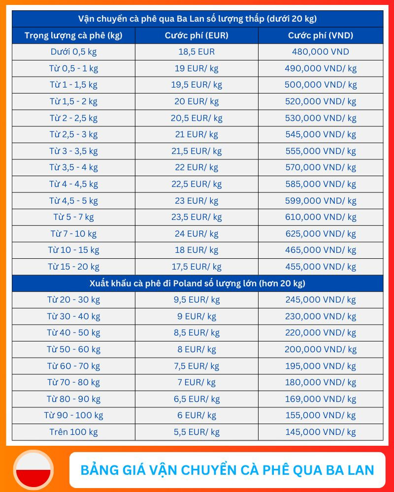 Chi Phí Vận Chuyển Cà Phê Sang Ba Lan Bao Nhiêu Tiền?