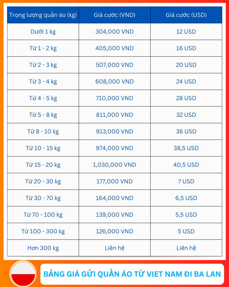 Bảng Cước Phí Gửi Quần Áo Sang Ba Lan Chuyên Nghiệp 2025