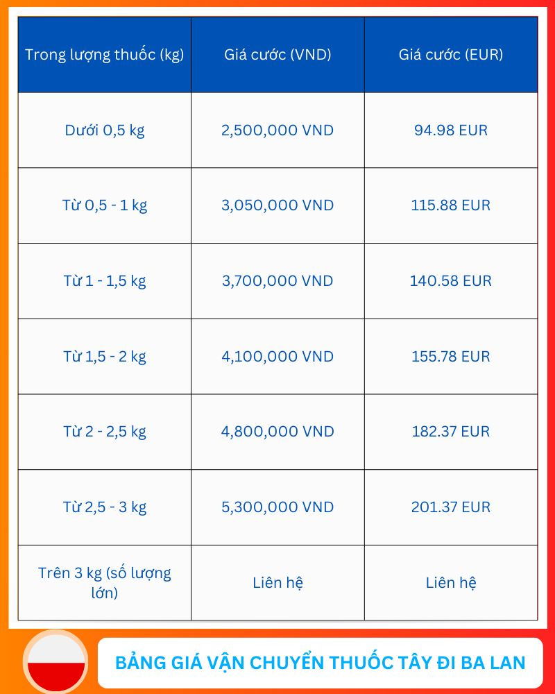 Bảng Giá Vận Chuyển Thuốc Tây Sang Ba Lan giá rẻ 2025